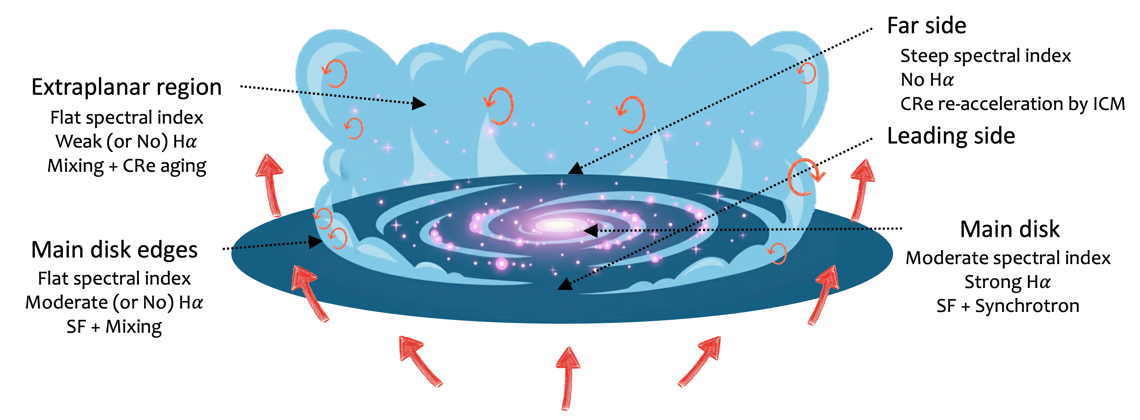 - Core Question: How does ram pressure stripping (RPS) affect the multiphase interstellar medium and regulate star formation in galaxies?