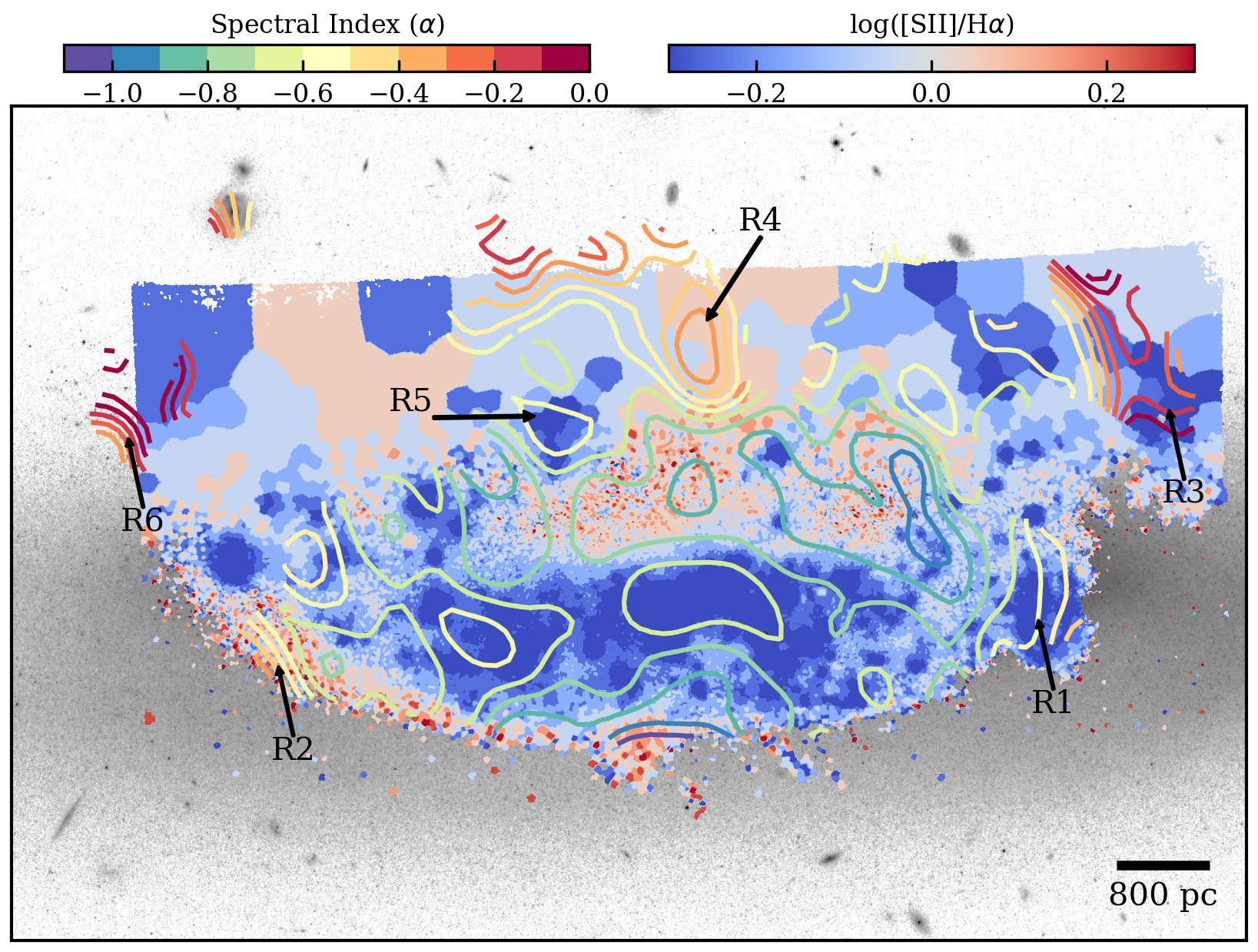 - Identified significantly steep spectral indices at the leading edge and exceptionally flat indices in the extraplanar tail, indicating local gas compression and ICM-ISM mixing.